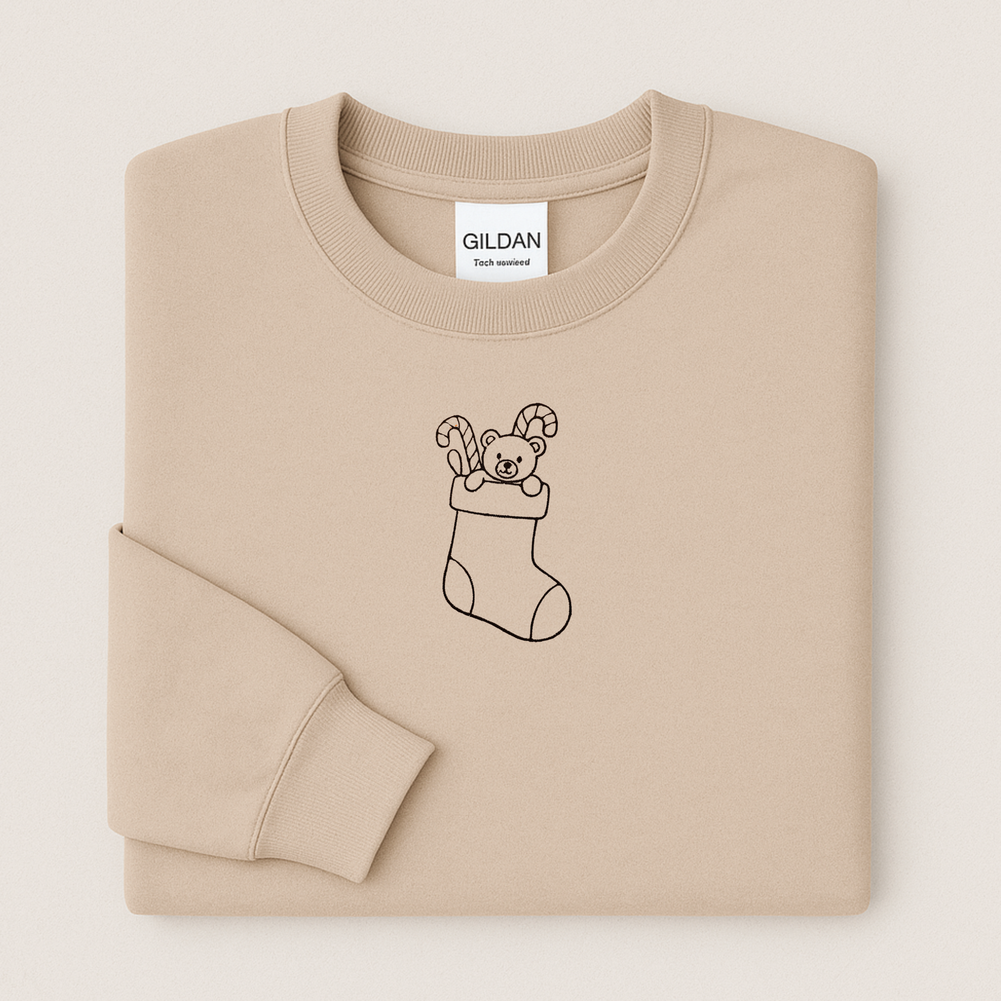 Christmas Stocking Embroidered Sweatshirt | Gildan | Teddy & Candy Canes Design