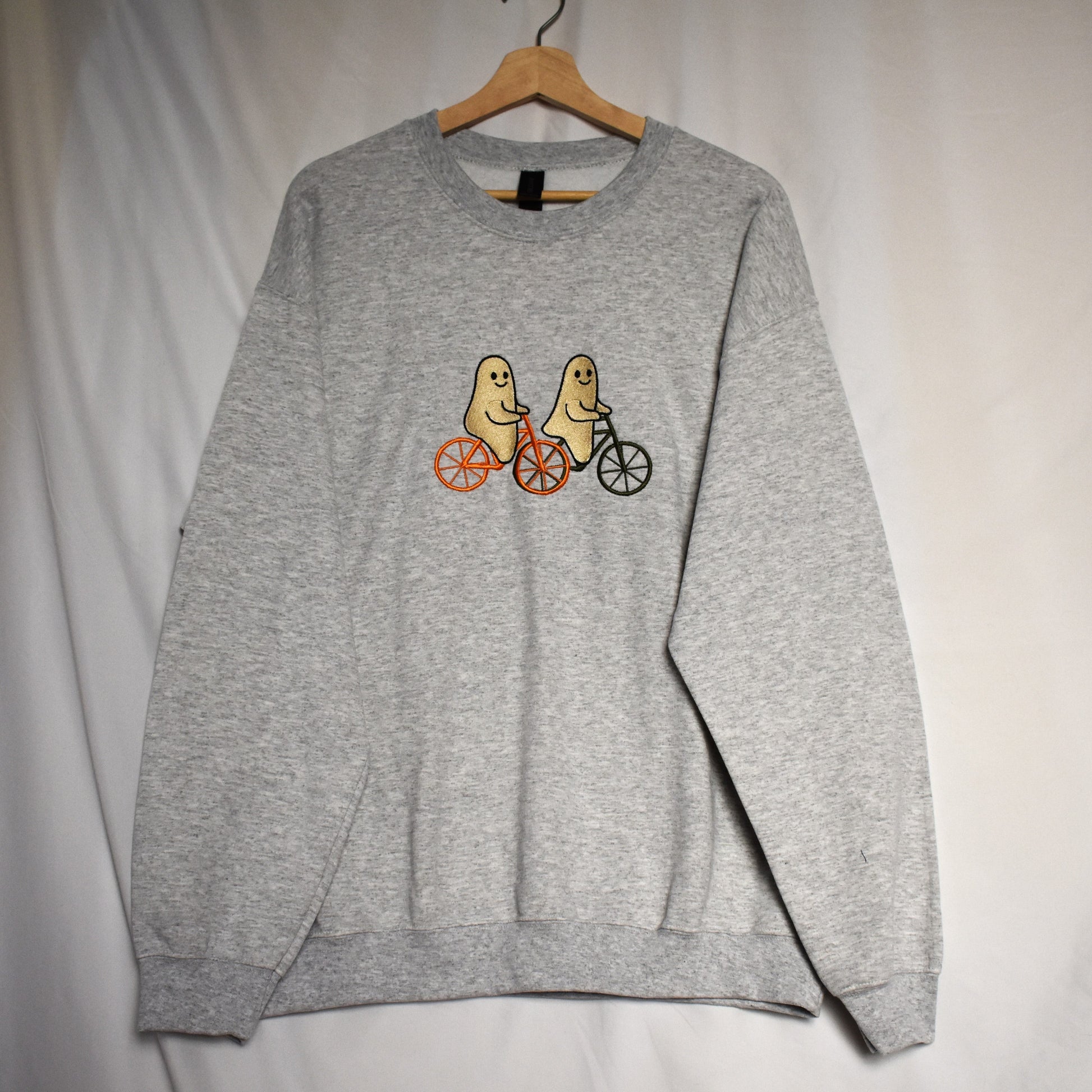 Get cozy this fall with our embroidered Ghosts on Bikes sweatshirt! This whimsical design features two friendly little ghosts riding bicycles, making it the perfect mix of spooky and cute. Whether you’re celebrating Halloween, enjoying autumn activities, or just love cozy embroidered sweaters, this sweatshirt is a must-have for your wardrobe.