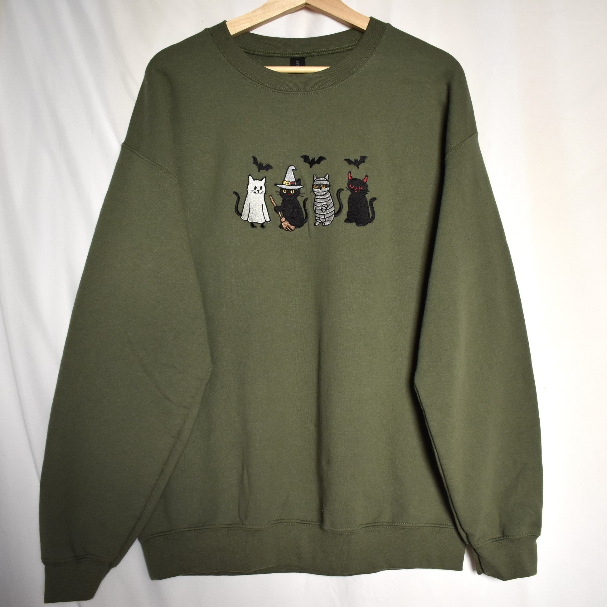 Embroidered Halloween Cat Sweatshirt – Ghost, Witch, Mummy & Devil Cats – Crewneck or Hoodie – Fall Spooky Season Sweater