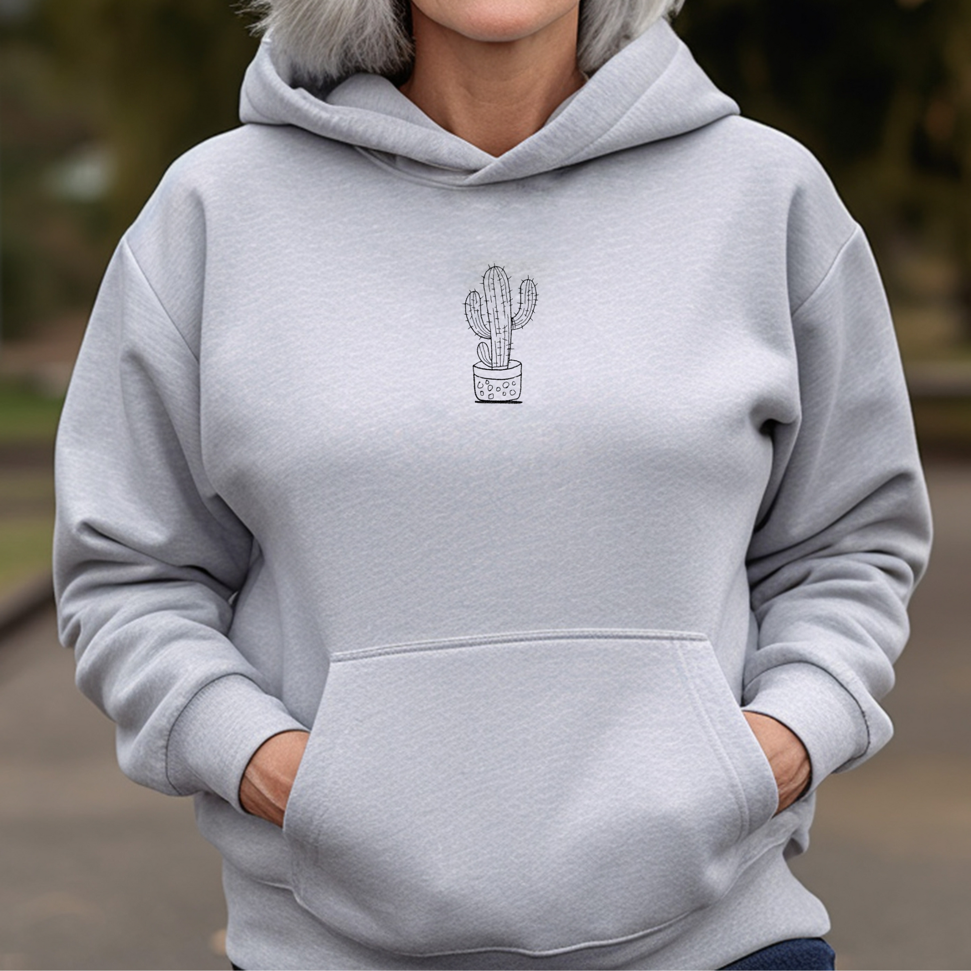 An embroidered sweatshirt featuring a line-stitched cactus design at the center combines a touch of desert-inspired flair with minimalist style. Made to order. Colors of thread may need to change depending on choice of shirt color.