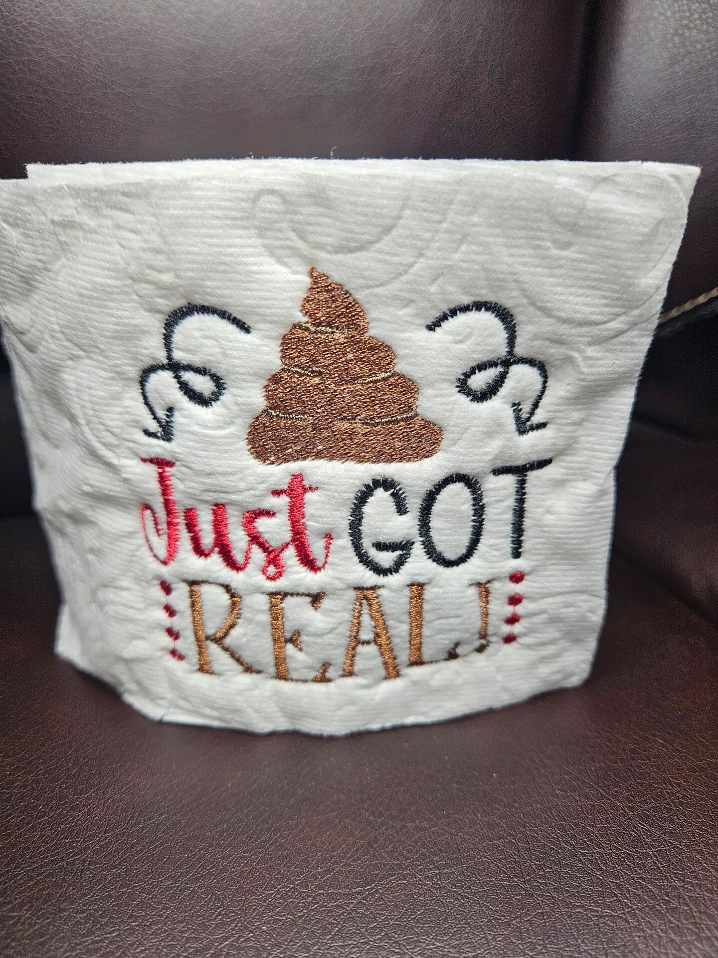 Embroidered Toilet Paper is a fun gift for anyone. Use as decor in bathroom. Lots of laughter with this gift.