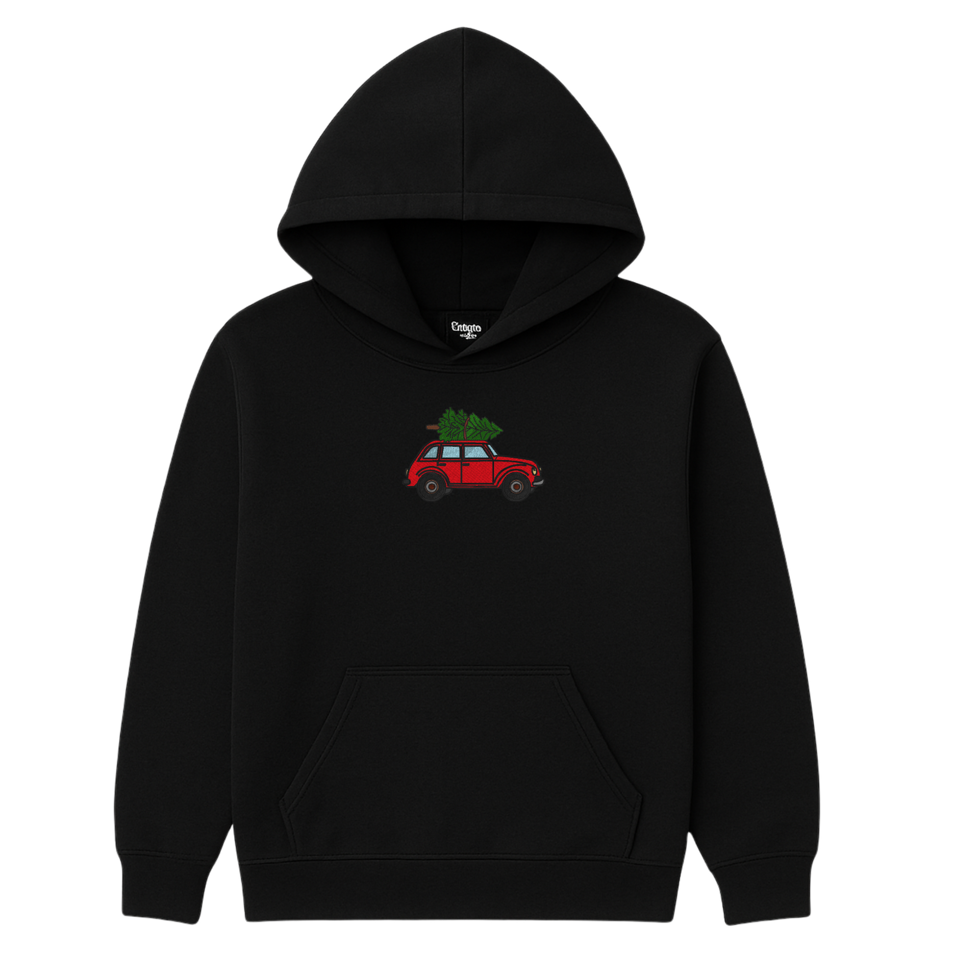 Celebrate the season in cozy style with this Christmas Car embroidered sweatshirt! Featuring a bright red car carrying a freshly cut Christmas tree, this festive design is stitched with high-quality embroidery for a cheerful look that lasts year after year.