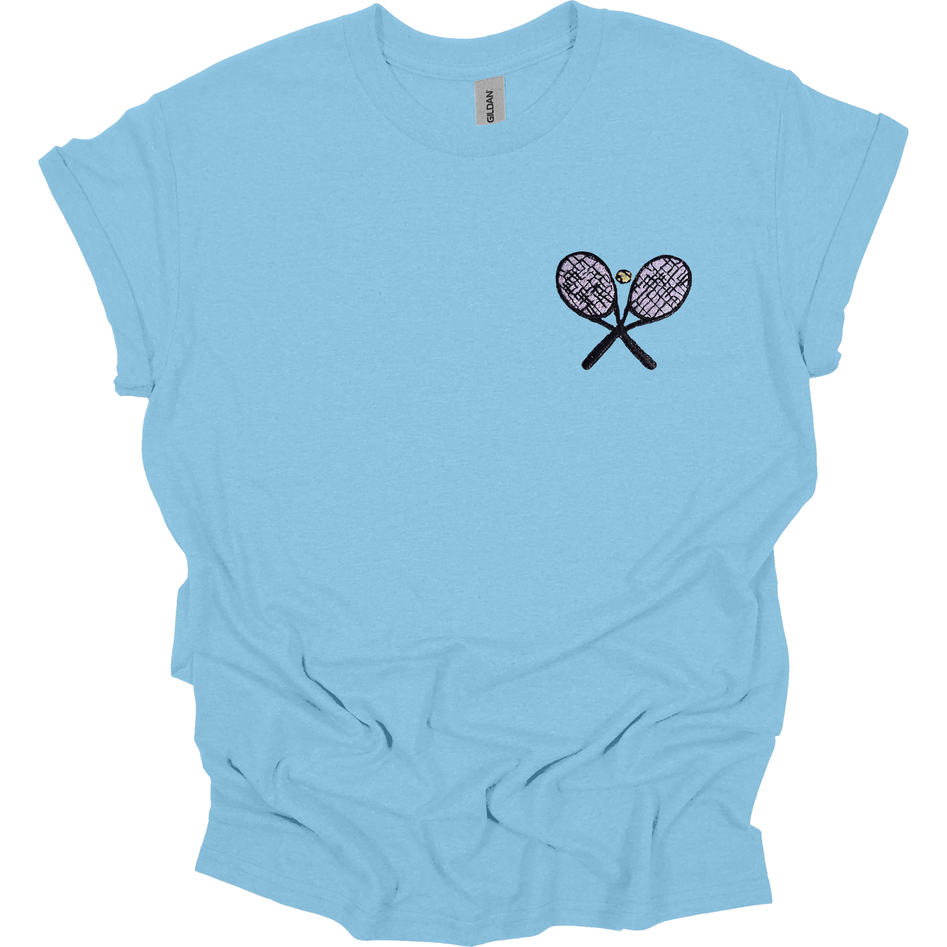 Embroidered Tennis Rackets T-shirt Womens and Mens Tee Shirt Gift Unisex Comfy Pullover Shirt Teen Gift Embroidered Custom Crewneck T-shirt